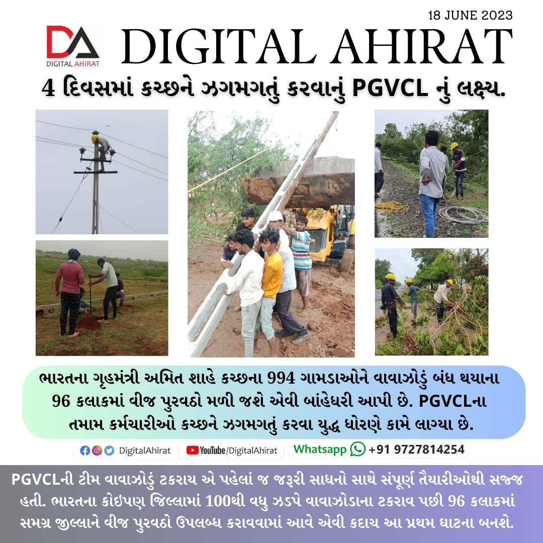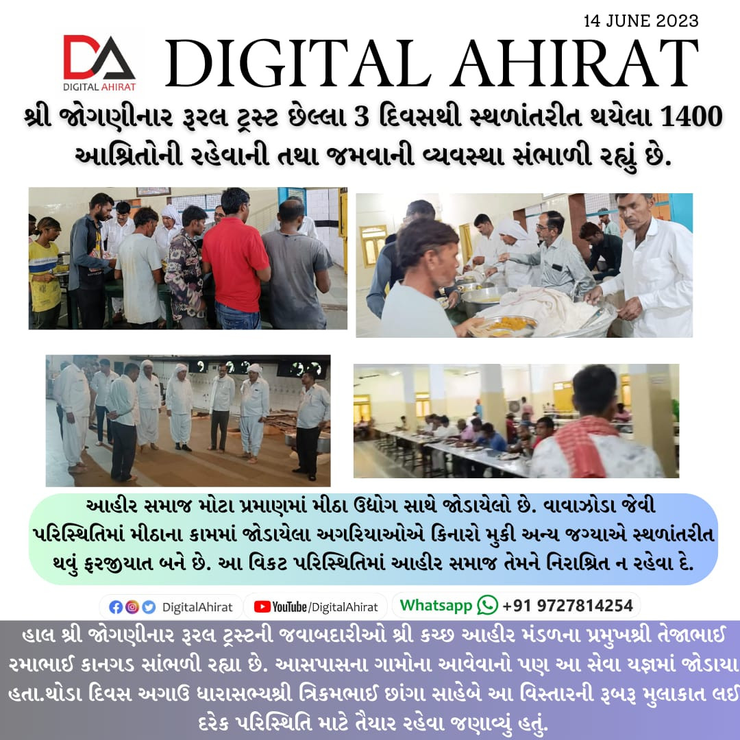 બીપરજોય વાવાઝોડું કચ્છના કિનારે ટકરાયું આહીર સમાજની તમાંમ સ્વૈચ્છીક સંસ્થાઓ અને પંચાયતોના સેવકાર્યો જરૂરિયાતમંદો સુધી પહોંચ્યા.