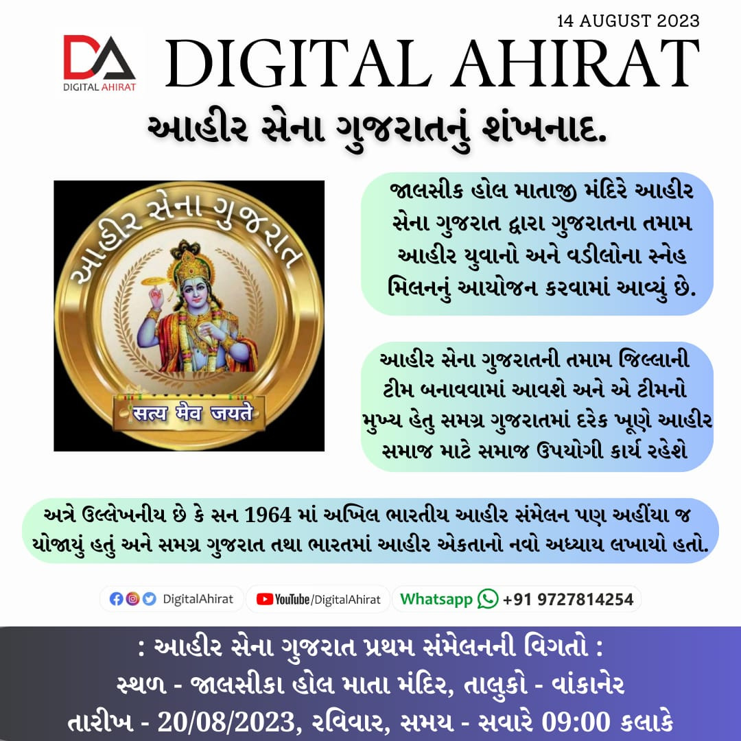 આહીર સેના ગુજરાતનું ગઠન થયો.