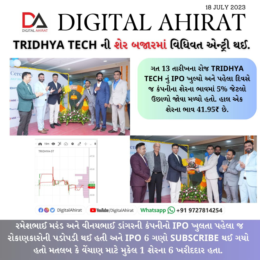 'ત્રિદ્યા ટેક' નું નામ કચ્છ આહીર સમાજના ઈતિહાસમાં સુવર્ણ અક્ષરે લખાયું. શેર બજારમાં લિસ્ટ થનારી કચ્છ આહીર સમાજની પ્રથમ કમ્પની બની.