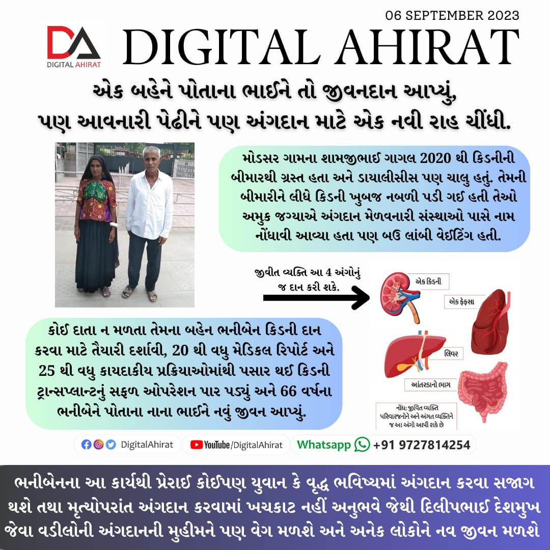 એક બહેને પોતાના ભાઈને કિડનીનું દાન આપી ભાઈની રક્ષા માટે રક્ષાબંધનના દિવસે બંધાતી રાખડીઓનું મૂલ્ય સમજાવ્યું.