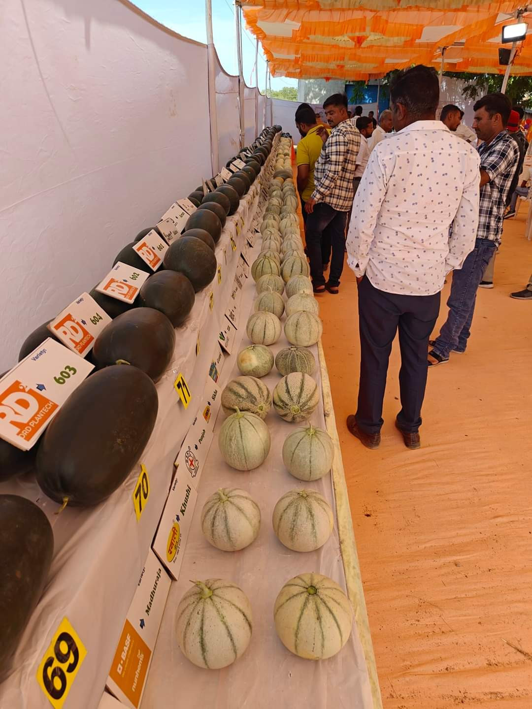 પ્રદર્શનીમાં વિવિધ વેરાયટીઓની ટેટીઓ જેવીકે ગોળ, લંબગોળ, પટ્ટી વાળી, પટ્ટી વગરની જાળી વાળી, અલગ અલગ સ્વાદ અને કલરની 400 ગ્રામ થી કરી 4 કિલો વજન સુધીની ટેટીઓ હતી. ખાસ વાત એ છે કે હરાજીમાં એક તરબુચ 51,000 રૂપિયામાં વેચાયો. બાકીનું વેચાણ પણ અટલનગરમાં હરિભાઈની વાડી મધ્યે ચાલુ કરવામાં આવેલ છે.